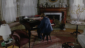 Danny s’installe donc au piano et commence à jouer. La caméra souligne ce moment privilégié par un travelling avant qui part du couloir et se rapproche du jeune instrumentiste, pour ensuite prendre de la hauteur en un mouvement ascendant, exprimant dès lors toute l’importance et toute l’intensité de ce moment vécu par l’adolescent, qui peut enfin entendre la mélodie produite par le déplacement de ses doigts sur un clavier digne de ce nom. Car jusqu’ici, Danny était cantonné au rude effort de l’apprentissage sans jamais pouvoir évaluer concrètement le résultat de son travail assidu.