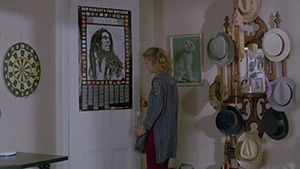 La suite de la scène décline une nouvelle fois la dialectique « musique classique / musique pop rock », amorcée par le Professeur Philips lors de sa démonstration en classe au lycée. À l’étage, Lorna écoute au casque un disque de reggae, Trouble In Africa (1985) de l’artiste Papa Levi, un chanteur anglais d’origine jamaïcaine, par ailleurs très militant et engagé. Dans la chambre de la jeune fille, on voit également un poster de Bob Marley, un élément de décoration représentant une guitare électrique et plusieurs disques de pop rock. Lorna est par ailleurs vêtue d’une tunique longue avec des motifs brodés qui connotent les années 60 (donc la génération hippie des parents de Danny). On en déduit que c’est là sa manière à elle de s’affirmer face au conformisme de sa famille. Son père est certes un prof sympathique et apprécié, convoquant Madonna à des fins pédagogiques, mais qui porte tout de même nœud papillon et veste de costume à carreaux en tweed, comme dans les années 50. Lorna et Danny sont donc deux personnages symétriquement inversés et parfaitement complémentaires.