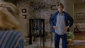 Comme on peut le percevoir dès le début de la scène, la maison du Professeur Philips est presque une image d’Épinal de ce « retour aux années 50 » prôné par le président Ronald Reagan, qui dès son premier mandat, se présentait comme le « nouveau bâtisseur du rêve américain ». Danny découvre en effet une habitation opulente, construite en bois blanc, avec la boîte aux lettres typique et le carré de pelouse bien tondue. Si bien qu’en arrivant chez son prof de musique, c’est comme si Danny venait d’effectuer un voyage dans le temps et qu’il se retrouvait dans une doublure des années 50, parfaitement conforme à l’idéologie reaganienne, laquelle œuvrait précisément à renvoyer la période de contestation étudiante anti-Guerre du Vietnam aux oubliettes de l’histoire. Car il s’agit désormais de vendre du rêve et du « chromo », en réaction aux revendications politiques et sociales de la jeunesse du milieu des années 60.