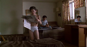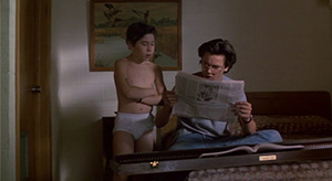 Lorsqu’il quitte la salle de bain, son père remarque dans le journal une photo manquante : celle des grands-parents maternels, que Danny a découpée plus tôt. Ce petit détail relie les deux séquences. Tandis qu’Annie efface les signes visibles de son fils, celui-ci, de son côté, a cherché à conserver une trace du passé familial. Le film oppose ainsi deux gestes contraires : la mère protège par la dissimulation, le fils résiste par la mémoire. La séquence se clôt sur un court échange entre Danny et son père, autour d’un match de football, d’une légèreté forcée. Le ton complice masque mal la distance qui s’installe entre eux, après la chaleur du tête-à-tête maternel.