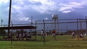 Le film s’ouvre sur Danny Pope (River Phoenix) saisi en plan rapproché, d’emblée désigné comme personnage principal et catalyseur des principaux enjeux à venir. Au cours d’une partie de baseball en plein air, Danny est immédiatement isolé des autres par le cadre et la situation. Ses premiers gestes le montrent gauche, mal à l’aise. Devant les grillages du terrain, le jeune homme n’est visiblement pas à sa place, ni dans l’équipe, dont il est un des seuls à ne pas porter la tenue, ni dans cette activité, ce que confirme le plan de demi-ensemble suivant, un contrechamp filmé depuis l’extérieur du stade, qui place le personnage comme « en détention provisoire » : en effet, autour de Danny, tout n’est que grilles et clôtures, auxquelles s’ajoute la présence à l’arrière-plan d’un grand réservoir d’eau, qui, tel un mirador, domine l’ensemble comme pour surveiller les faits et gestes des joueurs.