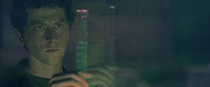 Les nappes musicales de la bande sonore prennent le relais de la narration classique pour imposer une temporalité plus abstraite. Le montage adopte une structure par épisodes, associant différents moments qui se télescopent et brouillent les repères chronologiques entre les images de prélèvements et celles des analyses en laboratoire. Les régimes d’images se mélangent également : la silhouette de Léo se dédouble, et l’on ne sait plus clairement si l’on se situe dans la réalité de l’expérience scientifique, dans un état altéré de perception ou dans une projection mentale du personnage. Cette indétermination est renforcée par la répétition des gestes techniques et par les mouvements de caméra. Les panoramiques verticaux, bas-haut, reviennent avec insistance, accompagnant le travail minutieux de Léo. La séquence prend alors la forme d’une opération quasi chamanique, la mise en scène semblant chercher à filmer la germination de quelque secret enfoui.