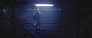Ce motif exploratoire se prolonge dans le mouvement de caméra qui remonte la rivière de nuit. Le silence quasi total, seulement troublé par de légers sons, installe une tension sourde. Le film adopte ici un régime mental : la progression dans l’espace épouse le mouvement intérieur de Léo, engagé dans une recherche dont l’origine lui échappe encore. Le retour au corps du personnage accentue cette tension. Une stridence sonore, proche du larsen, vient rompre le silence et accompagne la montée de l’angoisse. L’esthétique du film emprunte alors aux codes du cinéma d’horreur : caméra à l’épaule, instabilité de l’image, éclairage cru. Derrière la porte d’une grange, Léo découvre un corps pendu, figé dans le halo blafard d’un néon. Cette vision ne livre aucune réponse explicite sur la source de la contamination des eaux, mais elle marque un point d’aboutissement dans la trajectoire du personnage. À travers cette image nocturne et traumatique, le film fait surgir une scène originaire, qui relie la quête rationnelle de Léo à une confrontation brutale avec la mort de son père. Cette scène onirique fonctionne ainsi comme une cristallisation du traumatisme refoulé par le personnage.