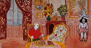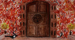 À l’intérieur, le manoir apparaît immense et silencieux. Les couloirs labyrinthiques résonnent des pas des personnages tandis que la lumière s’allume dans des espaces vides, au cours d’une visite scandée par des fondus au noir. La décoration surchargée, les trophées de chasse, les couleurs vives et contrastée proposent un environnement inquiétant et de mauvais goût suscitant un effet d’étouffement. Les chambres assignées aux enfants sont décorées sur un modèle identique : elles déclinent des couleurs criardes et des motifs enfantins stéréotypés (ourson, poupée), sans rapport avec leur âge. L’exclamation de Madame Della Chiusa — « la chambre de mes petits enfants » — leur impose une identité factice, conforme au seul désir de Florabelle.