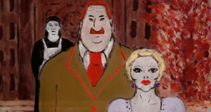 Dès leur apparition, les époux della Chiusa, couple contrasté et menaçant, s’inscrivent dans l’imaginaire du conte. Florabelle, silhouette cadavérique et visage blafard, incarne une marâtre dont la douceur affectée masque une volonté d’emprise. Son mari, massif et autoritaire, évoque la figure de l’ogre. La transaction initiale, résumée par la remarque de Kyona — « Il nous a vendus comme des chiots » — définit la nature de cette adoption sur le mode de l’appropriation et du dressage, selon une logique qui structure toute la séquence. La fermeture de la lourde porte derrière les enfants résonne lourdement comme la clôture d’un piège. Le plan montrant la pie chassée par le rugissement du lion sculpté manifeste, de manière fantasmagorique, le caractère maléfique du château et son inscription dans le registre du merveilleux.
