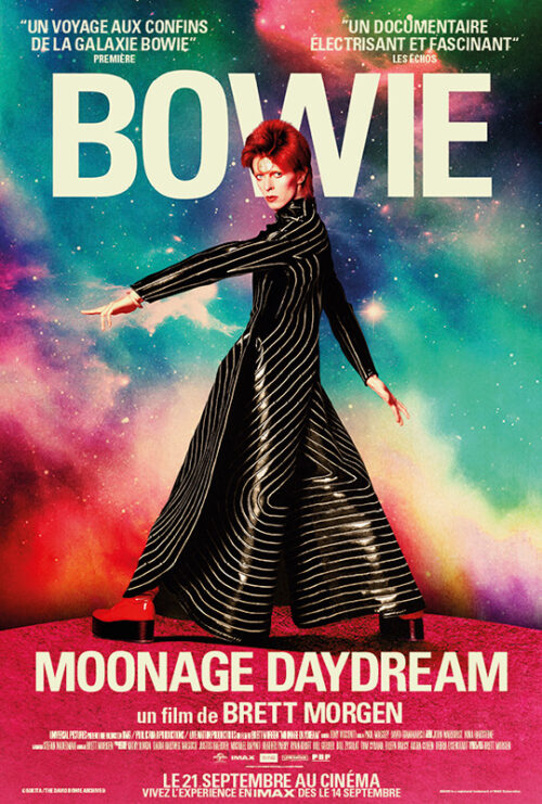 MOONAGE DAYDREAM offre un éclairage sur le génie qu’était David Bowie, l’un des artistes les plus prolifiques et les plus marquants de notre époque. Le film offre une odyssée cinématographique à travers l’œuvre créative et musicale de David Bowie. Dévoilant des images inédites, le documentaire a été réalisé par Brett Morgen et a nécessité cinq ans de travail, avec le soutien et la complicité de la famille et des collaborateurs de Bowie.
