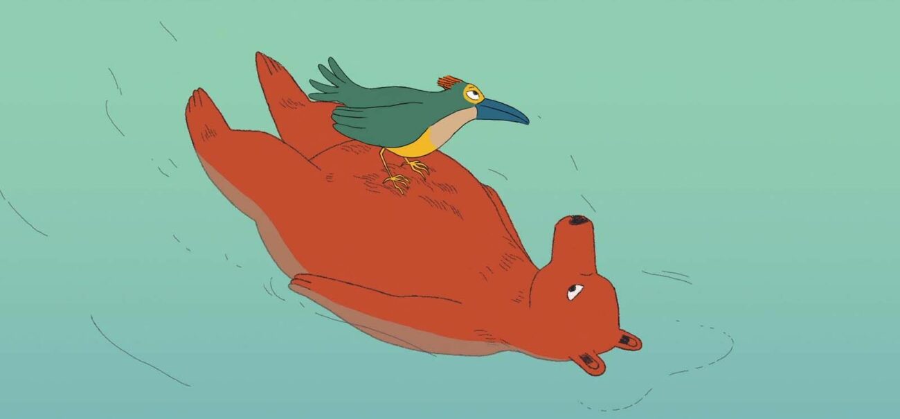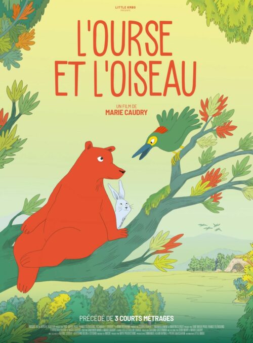 Quatre ours, quatre contes, quatre saisons : qu’ils soient immenses, ensommeillés ou gourmands, les ours savent aussi être tendres. À leurs côtés, un oisillon malicieux, un petit lapin friand de noisettes ou encore un oiseau sentimental vivent des aventures extraordinaires. Tout doucement, ils découvrent le bonheur d’être ensemble.Programme :Animal rit d’Aurore Peuffier (France, 3′) : Fasciné par le spectacle d’un ours acrobate, un oisillon se met en tête de participer : ni une, ni deux, il saute sur scène et commence à amuser la galerie avec ses pitreries. Mais c’est tout un art de faire le clown…Chuuut ! de Nina Bisyarina (Russie, 7′) : Un ours s’approche d’un parc d’attractions quand il est surpris par la neige. Ses yeux commencent doucement à se fermer : il est temps pour lui d’hiberner, et cet endroit semble si douillet… Mais est-ce vraiment une bonne idée ?Émerveillement de Martin Clerget (France, 3´) : D’habitude, les ours n’aiment pas trop partager leurs réserves de noisettes, et surtout pas avec des petits chapardeurs. Mais cette nuit-là, pour le petit lapin et l’énorme ours, tout est différent…L’Ourse et l’oiseau de Marie Caudry (France, 26′) : Au cours de l’été, une ourse et un oiseau sont devenu·es inséparables. Quand l’automne arrive, il faut se rendre à l’évidence : bientôt l’ourse devra hiberner et l’oiseau devra migrer – l’une rêvera tandis que l’autre voyagera. L’heure des adieux approche… Mais on souffle alors à l’ourse une idée extraordinaire qui va changer son hiver.